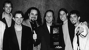 The Jars, celebrating a #1 single, with Robert Beeson (President of Essential Records) and rock legend Adrian Belew |