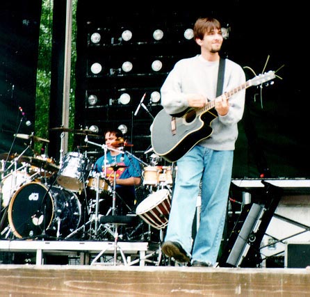 Steve Mason jams at Paramount's Great America with Scott Savage in the background