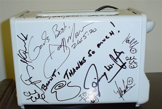 Michelle volunteers at WAY FM in West Palm Beach every week. The co-host of the morning show, Brant, seems to have an obsession with toast, and is owner of the toaster that the Jars signed. There are many other Christian artists whose autographs are on said toaster. The toaster is mentioned quite often on the morning show, and there is currently an "Extreme Toasting" contest going on at WAY FM. Brant would love some "Extreme Toasting" pictures from Jarks. As a matter of fact, the Jars toaster pic is one of the "entries." Check out WAY-FM Morning Show.